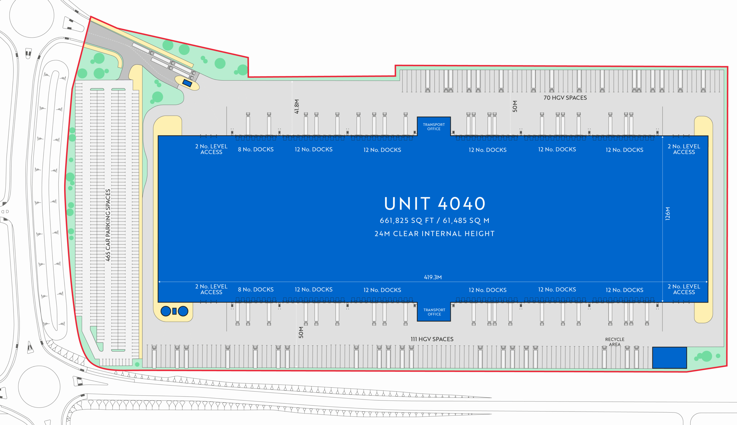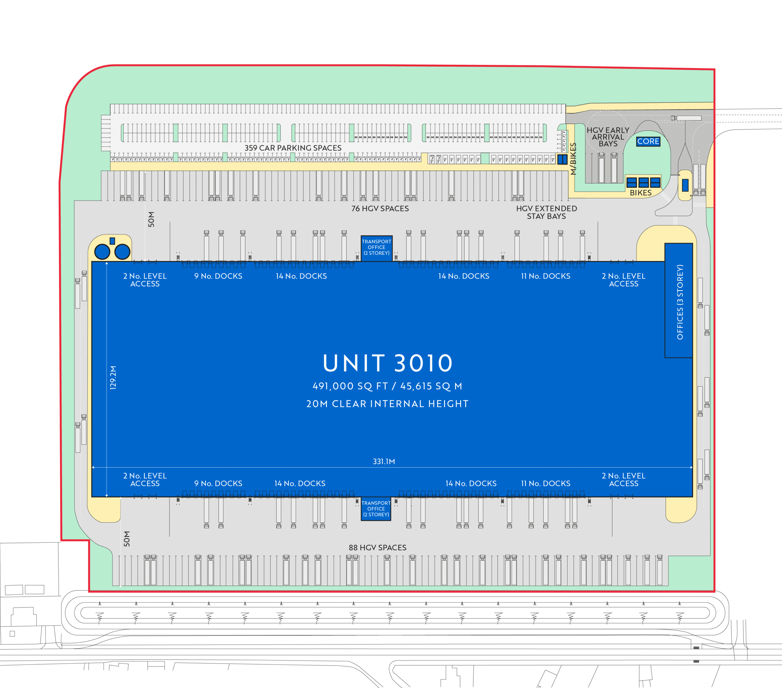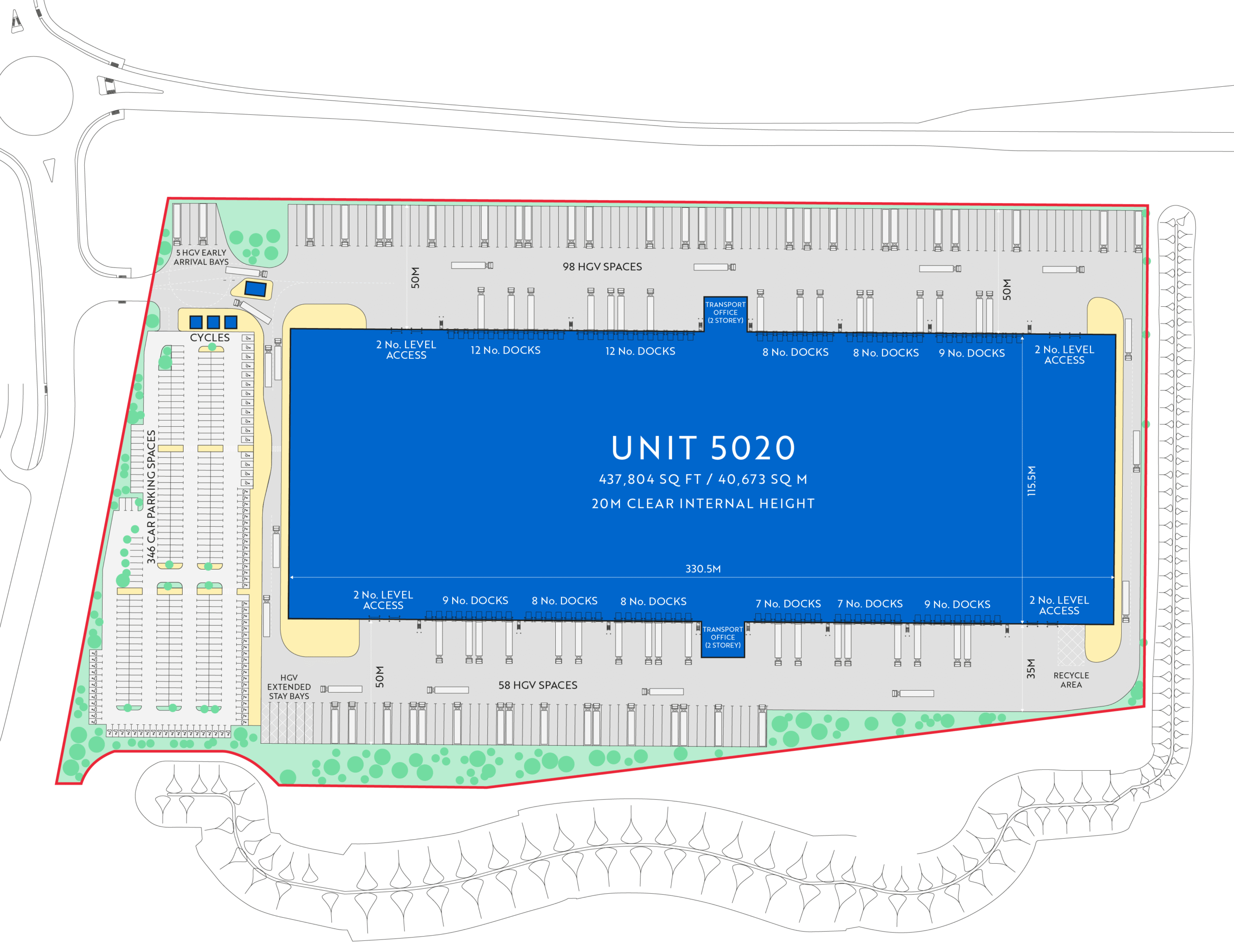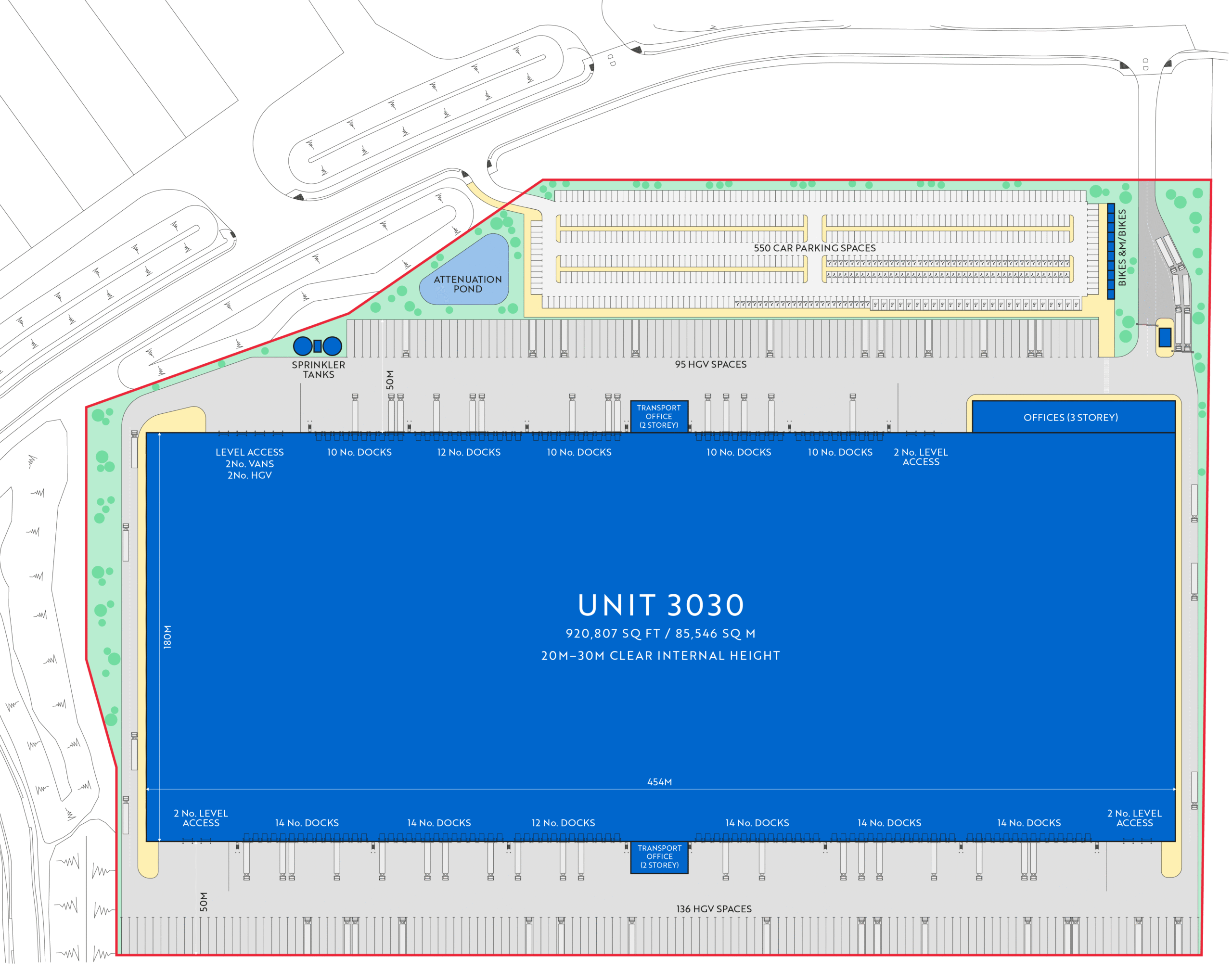 The initial infrastructure works will see 6 key buildings brought forward: Unit 5010 (194,269 sq ft), Unit 3020 (397,595 sq ft), Unit 5020 (437,804 sq ft), Unit 3010 (491,000 sq ft), Unit 4040 (661,825 sq ft) and Unit 3030 (920,817 sq ft).